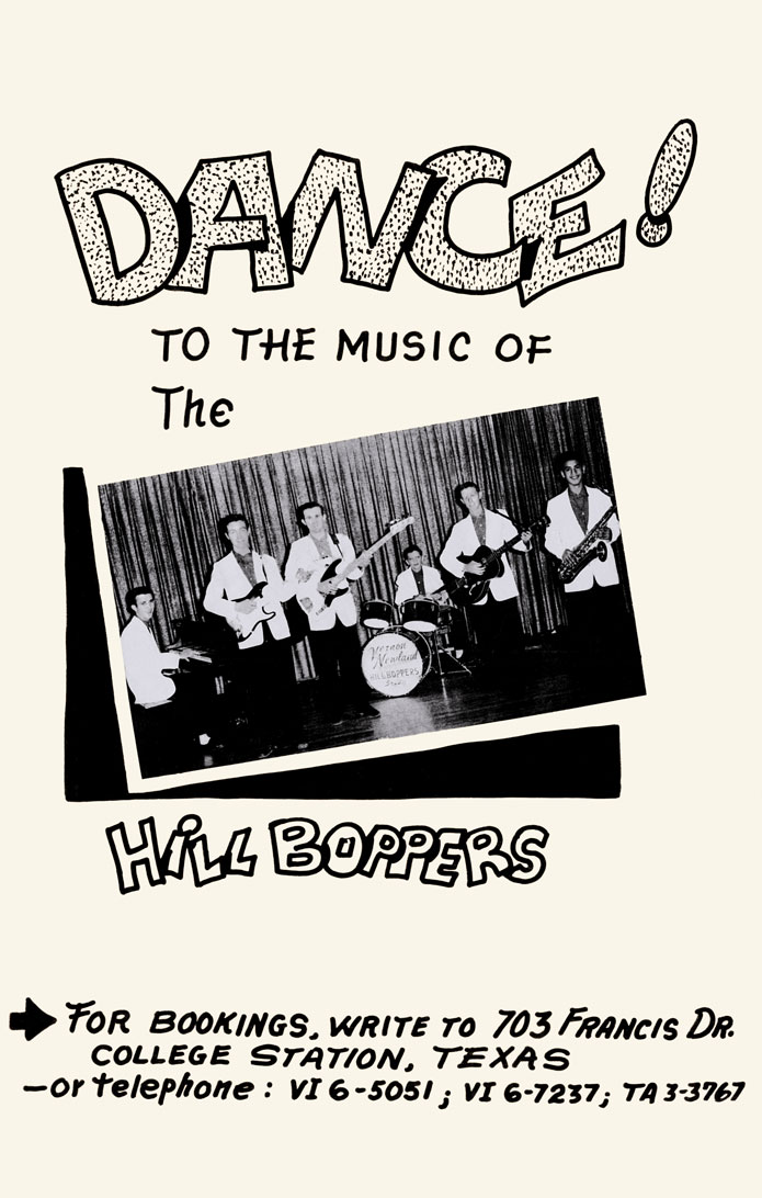 Newspaper photo from The Franklin Texan of the Franklin Hep-Cats at the Hillbilly Jamboree, published January 13, 1955. Taken at the Franklin Theater on New Year’s Eve, 1954. From left to right, Charles Ellison on fiddle, Don Wood on guitar and Dave, age 13, with his Silvertone archtop guitar. The “Hillbilly Jamboree News” was a regular feature in the Texan that often mentioned Dave. In a chatty tone common to small town newspapers, Dave is said to have “made the gals’ hearts flip-flop,” “knocked sparks with his guitar” and “nearly beat the strings off it.” One column mentioned that Dave “has a new guitar (a 1956 Fender Stratocaster) ordered,” and in a later edition called him “the flash of ’56, doing some fast and fancy picking on that new guitar.” |